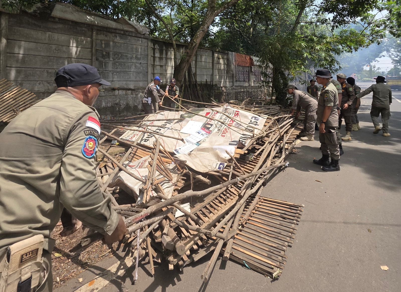 Dengan kekuatan puluhan anggota Satpol PP, proses pembongkaran pun dilakukan. Banyak pemilik warung kopi pangku akhirnya membongkar bangunan mereka secara sukarela.