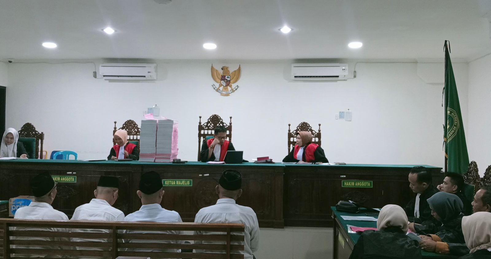 Terdakwa yang menjalani persidangan tersebut yakni mantan Sekwan Kaur Arsal Adelin, Mantan Kabag Humas Roni Oksuntri, Mantan Kabag Umum Aprianto dan Mantan Kasubag Halim Zaend.