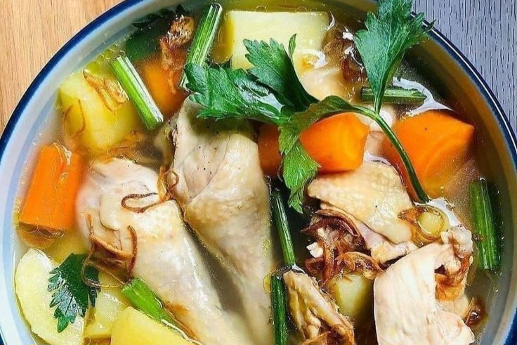 Sup ayam sayuran adalah pilihan aman dan menenangkan untuk perut yang kosong seharian.