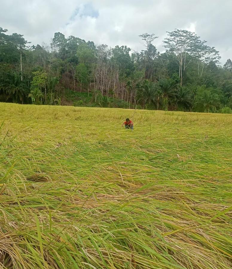 “Banjir terjadi pada Jumat sore 9 Januari kemarin. Belasan hektare padi masyarakat mengalami kerusakan. Padahal padi tersebut sudah memasuki masa panen,” tegas Saripudin.
