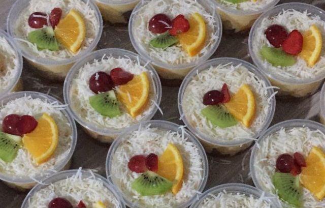 Selain berisi buah segar, beberapa topping dapat disajikan pada makanan sehat salad buah ini, misalnya keju ataupun saus mayo.