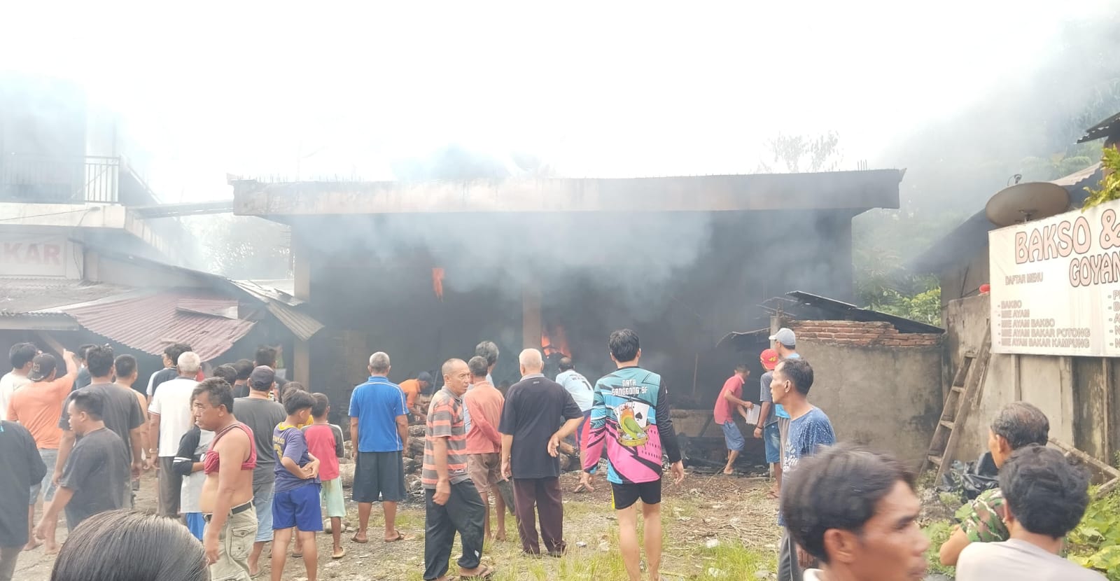 “Iya memang ada kejadian kebakaran sore tadi sekitar jam setengah lima sore. Tapi untuk kronologi kebakaran warung bakso goyang lidah ini belum tahu pasti. Tadi ada yang bilang dari bakaran sampah, ada juga yang bilang dari kompor warung, karena dititik lokasi kebakaran ini, ada terdapat kayu bakar dan lainnya,” ungkap Lurah Masmambang.