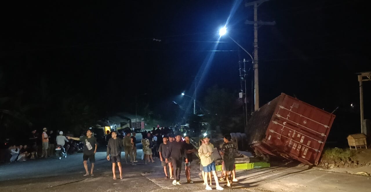 BENGKULU, BEKENTV – Truck kontainer mengalami kecelakaan lalu lintas hingga terguling di jalan fly over Kota Tais, Kecamatan Seluma, Kabupaten Seluma, Sabtu, 21 Febuari 2026 dini hari sekitar pukul 01.30 WIB.