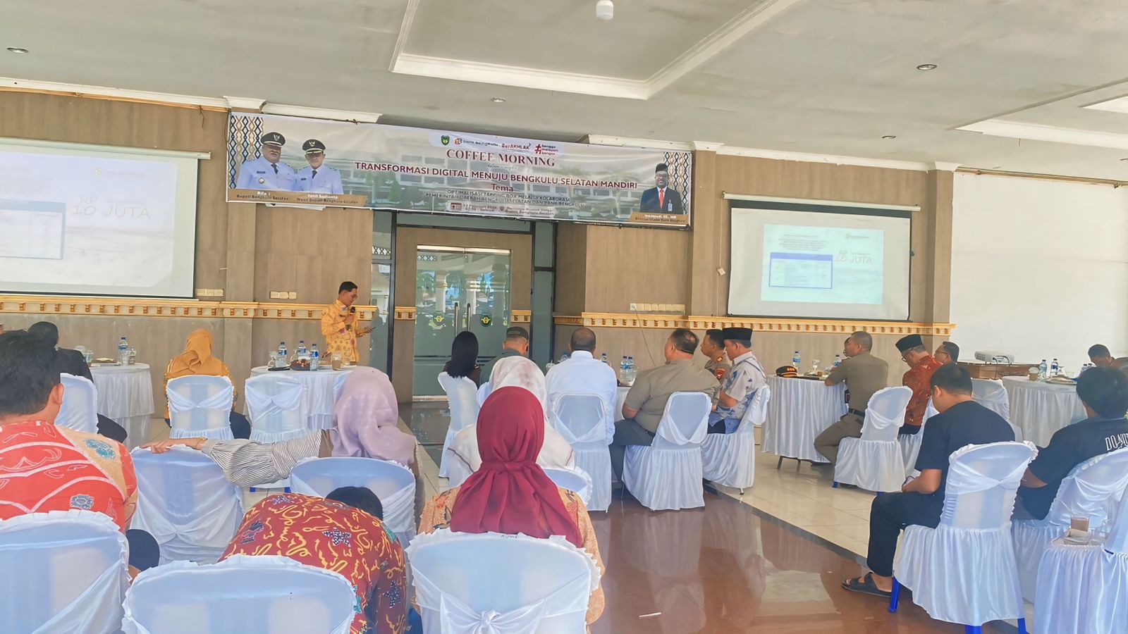 Salah satu langkah yang dilakukan melalui kegiatan coffee morning bertema Optimalisasi Tapping Box melalui Kolaborasi Pemerintah Kabupaten Bengkulu Selatan dan Bank Bengkulu di halaman Pendopo Rumah Dinas Bupati, Kamis (12/2/2026).